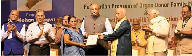 भागवत ने कहा कि समारोह में उन्हें विघ्नहर्ता की मूर्ति दी गई है और अपने स्वजनों का अंगदान कर इन परिवारों ने किसी न किसी तरह का विघ्न हरा है और जरूरतमंदों को नई जिंदगी दी है। ये काम जोश में नहीं, होश में करने का है और दोनों की जरूरत है।