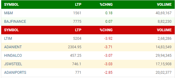 निफ्टी के टॉप गेनर्स और टॉप लूजर्स