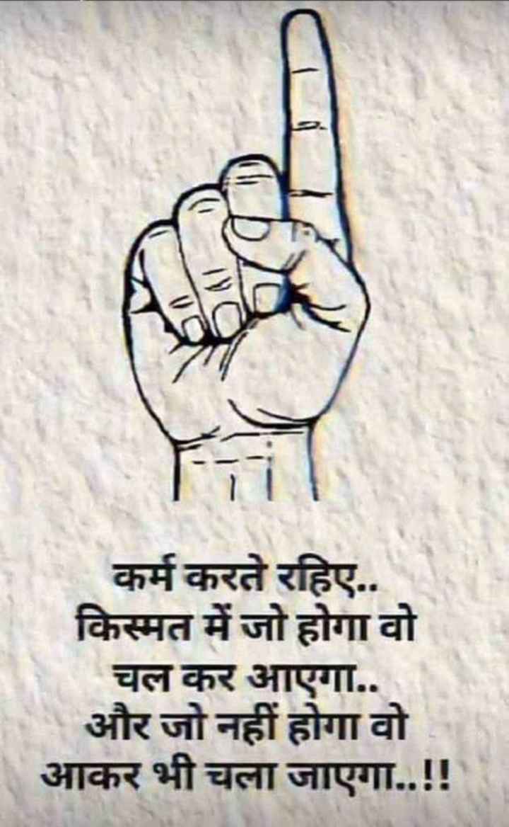कर्म करते रहिये किस्मत में जो होगा मिलेगा। इंसान के कर्मों से उसका भाग्य तय होता है। इंसान को कर्म करते रहना चाहिए, क्योंकि कर्म से भाग्य बदला जा सकता है। यही कारण है कि हम कर्म को भी प्रधान मानते हैं और भाग्य की बात भी कहते हैं। हम जैसे कर्म करेंगे वैसा ही हमारा बहीखाता होगा और उसी के आधार पर हमें इस जन्म में संचित कर्म का फल प्राप्त होगा। इस तरह हमारा भाग्य भी कर्म से ही बनता है और भाग्य के मूल में भी कर्म ही होता है। भाग्य का प्रभाव मनुष्य में ही नहीं, सभी प्राणियों में देखा जा सकता है। एक कुत्ता किसी धनवान के घर में रहता है और दूसरा साधारण व्यक्ति के घर में। एक शेर चिड़ियाघर में रहता है और एक जंगल में। एक जानवर गुस्सैल और कटखना तथा दूसरा बेहद शांत और सीधा होता है।
