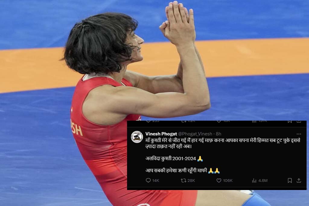 भारतीय महिला पहलवान विनेश फोगाट ने पेरिस ओलंपिक 2024 में स्वर्ण पदक मुकाबले से पहले अयोग्य ठहराये जाने के बाद अपनी मां को संबोधित एक भावुक संदेश में कुश्ती को अलविदा कहने की घोषणा की और कहा कि अब आगे खेलने की ताकत नहीं है। विनेश को बुधवार को महिलाओं के 50 किग्रा वर्ग के फाइनल से पहले 100 ग्राम अधिक वजन होने के कारण अयोग्य ठहराया गया था। उन्होंने ‘एक्स’ पर संन्यास की घोषणा की। अपनी मां प्रेमलता को संबोधित करते हुए 29 वर्षीय विनेश ने लिखा कि मां, कुश्ती मेरे से जीत गई, मैं हार गई। माफ करना। आपका सपना मेरी हिम्मत सब टूट चुके। इससे ज्यादा ताकत नहीं रही अब। कुश्ती में दो बार की विश्व चैम्पियनशिप कांस्य पदक विजेता ने कहा ने बड़े दुखी मन से खेल को अलविदा कहा है। उसके पहले विनेश ने बुधवार को खेल पंचाट (कैस) में ओलंपिक फाइनल से खुद को अयोग्य ठहराए जाने के खिलाफ अपील की और मांग की कि उन्हें संयुक्त रजत पदक दिया जाए।