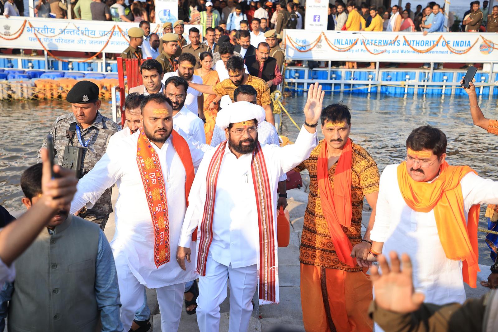 उत्तर प्रदेशातील प्रयागराज येथे सोमवारी राज्याचे उपमुख्यमंत्री एकनाथ शिंदे यांनी पत्नी सौ. लता शिंदे यांच्यासह महाकुंभ मेळाव्यात शाही स्नान केले. यावेळी मंत्री उदय सामंत, मंत्री दादा भुसे आणि मंत्री भरत गोगावले, मंत्री गुलाबराव पाटील यांनीही शाही स्नान केले. यावेळी उपमुख्यमंत्री एकनाथ शिंदे यांनी पत्रकारांशी संवाद साधला.