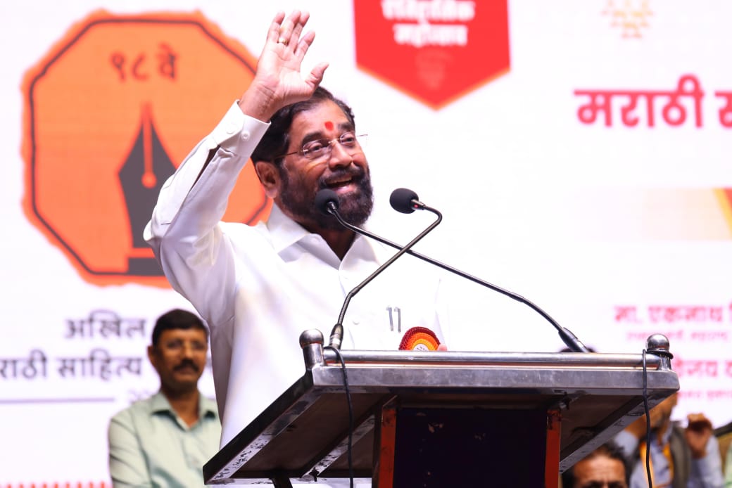 माझ्या मुख्यमंत्रीपदाच्या काळात मी ‘जय जय महाराष्ट्र माझा’.. या गीताला राज्य गीताचा दर्जा दिला. आज सर्व शाळा आणि शासकीय कार्यालयातील प्रत्येक कार्यक्रमात राष्ट्रगीतासोबत हे राज्यगीत अभिमानाने गायले जाते. माझ्याच मुख्यमंत्रीपदाच्या कार्यकाळात मराठी भाषेला अभिजात भाषेचा दर्जा मिळाला हे माझ्यासाठी फार अभिमानास्पद असल्याचे सांगितले. या कार्यात माझाही खारीचा वाटा होता याचाही मला सार्थ अभिमान आहे. यापुढे देखील मराठीच्या विकासासाठी असेच काम करत राहू असा विश्वास यावेळी बोलताना शिंदे यांनी व्यक्त केला.