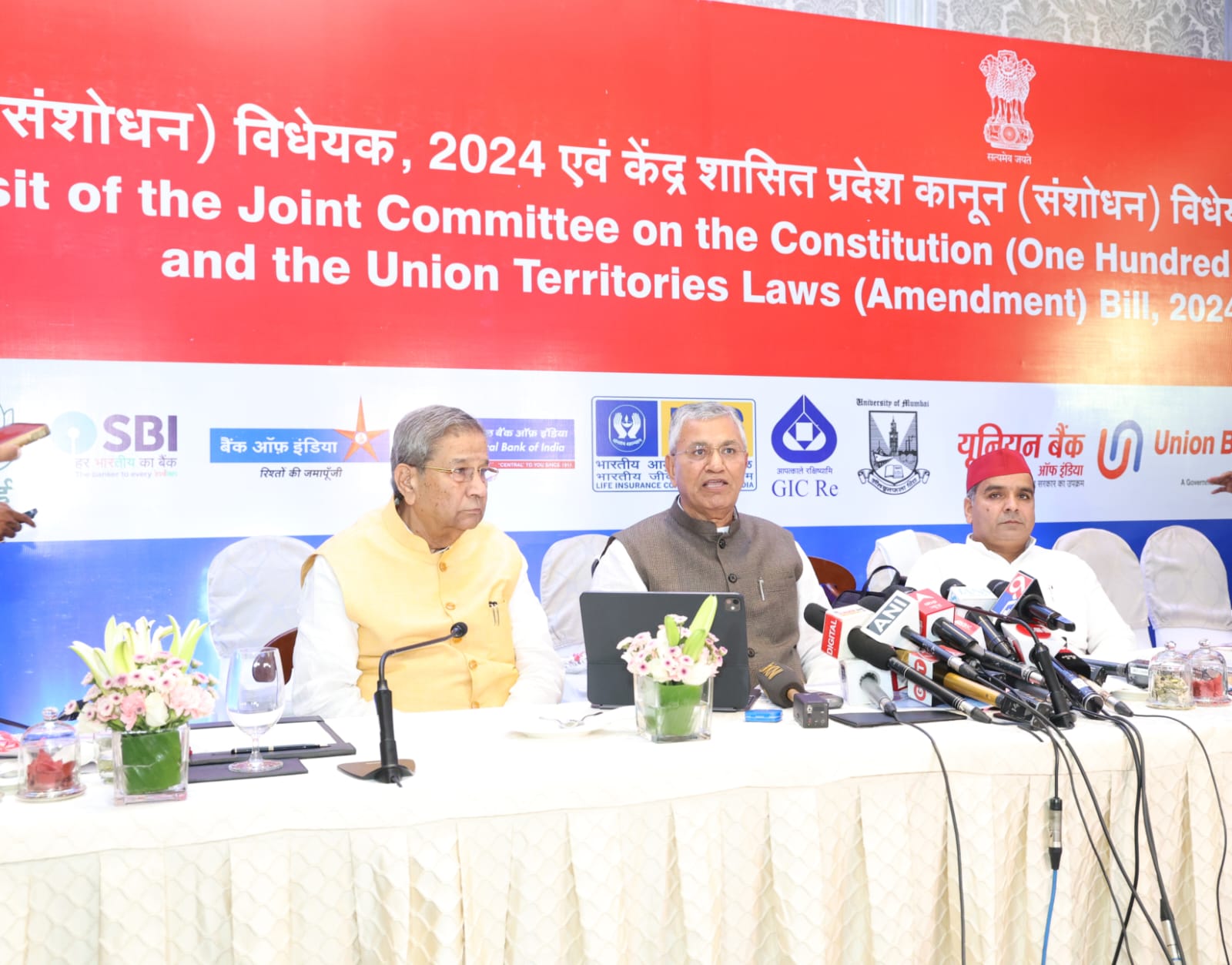 भारतीय संविधान (129वां संशोधन) विधेयक, 2024 और केंद्रशासित प्रदेश कानून (संशोधन) विधेयक, 2024 के संदर्भ में गठित की गई संयुक्त समिति ने महाराष्ट्र राज्य सरकार के वरिष्ठ अधिकारियों के साथ-साथ विभिन्न राष्ट्रीय और प्रादेशिक राजनीतिक दलों के प्रतिनिधियों, भारतीय रिज़र्व बैंक, विभिन्न बैंकों और बीमा कंपनियों के साथ विस्तृत सलाह-मशविरा किया।