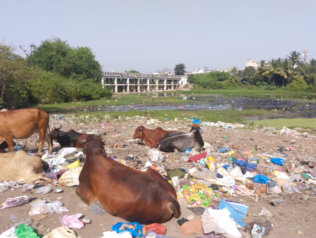 рддрд╛рд▓рд╛рдм рдХреЗ рдкрд╛рд╕ рдХрдИ рдЖрд╡рд╛рд░рд╛ рдкрд╢реБ рд░реЛрдЬрд╛рдирд╛ рдХрдЪрд░реЗ рдХреЗ рдвреЗрд░реЛрдВ рдкрд░ рдмреИрдардХрд░ рдЦрд╛рдирд╛ рдЦреЛрдЬрддреЗ рдирдЬрд░ рдЖрддреЗ рд╣реИрдВред