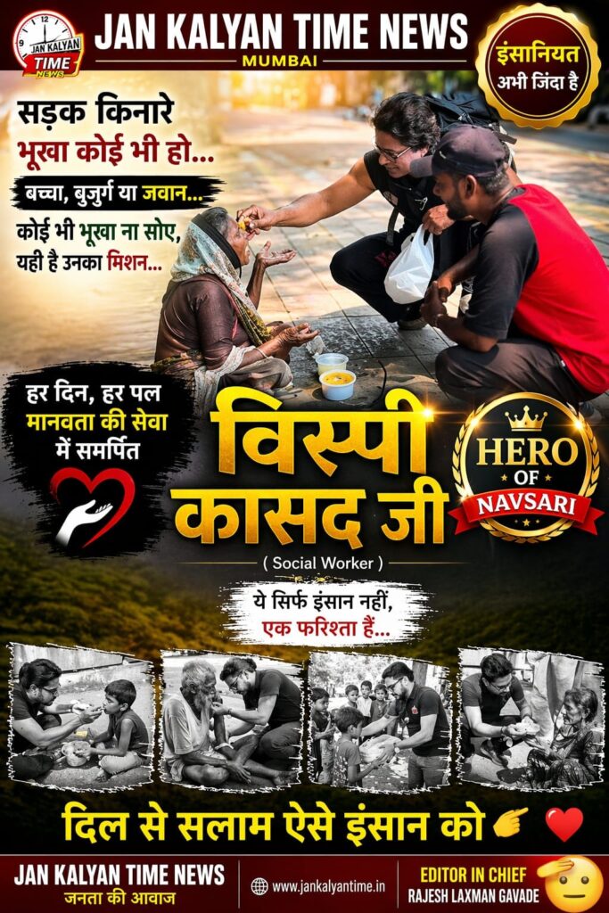 рдЖрдЬ рдХреЗ рдЗрд╕ рддреЗрдЬрд╝-рд░рдлреНрддрд╛рд░ рдФрд░ рд╕реНрд╡рд╛рд░реНрде рд╕реЗ рднрд░реА рджреБрдирд┐рдпрд╛ рдореЗрдВ рдЬрд╣рд╛рдВ рд▓реЛрдЧ рдЕрдХреНрд╕рд░ рдЕрдкрдиреЗ рддрдХ рд╣реА рд╕реАрдорд┐рдд рд░рд╣ рдЬрд╛рддреЗ рд╣реИрдВ, рд╡рд╣реАрдВ рдХреБрдЫ рдРрд╕реЗ рд▓реЛрдЧ рднреА рд╣реИрдВ рдЬреЛ рдмрд┐рдирд╛ рдХрд┐рд╕реА рдкрд╣рдЪрд╛рди, рдмрд┐рдирд╛ рдХрд┐рд╕реА рд╕реНрд╡рд╛рд░реНрде рдХреЗ рдорд╛рдирд╡рддрд╛ рдХреА рд╕реЗрд╡рд╛ рдореЗрдВ рдЬреБрдЯреЗ рд░рд╣рддреЗ рд╣реИрдВред рдРрд╕реЗ рд╣реА рдПрдХ рдорд╣рд╛рди рд╡реНрдпрдХреНрддрд┐рддреНрд╡ рд╣реИрдВ тАУ рд╡рд┐рд╕реНрдкреА рдХрд╛рд╕рдж рдЬреА (Social Worker), рдЬрд┐рдиреНрд╣реЗрдВ рдЖрдЬ рд▓реЛрдЧ тАЬHero of NavsariтАЭ рдХреЗ рдирд╛рдо рд╕реЗ рдЬрд╛рдирддреЗ рд╣реИрдВред